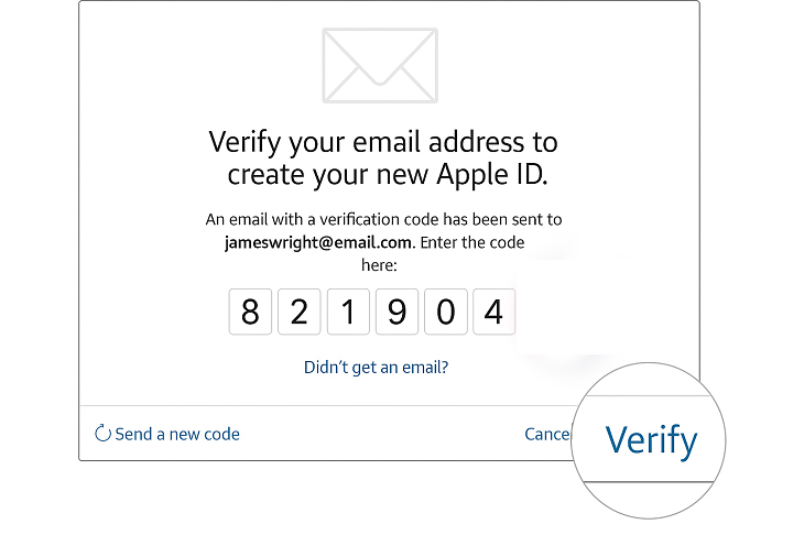 تأیید ایمیل: اپل یک کد ۶ رقمی به آدرس ایمیلی که ثبت کردهاید ارسال میکند. کد را در پنجرهی تأیید وارد کرده و روی دکمهی Verify کلیک کنید (عکس پایین)