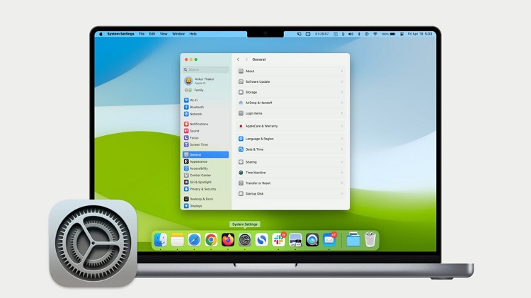 - از نوار بالای صفحه روی آیکون Apple کلیک کنید و گزینه System Settings (در نسخههای قدیمیتر System Preferences) را انتخاب نمایید.